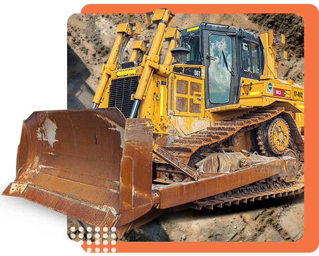 Maquinaria pesada para excavación, nivelación y carga.